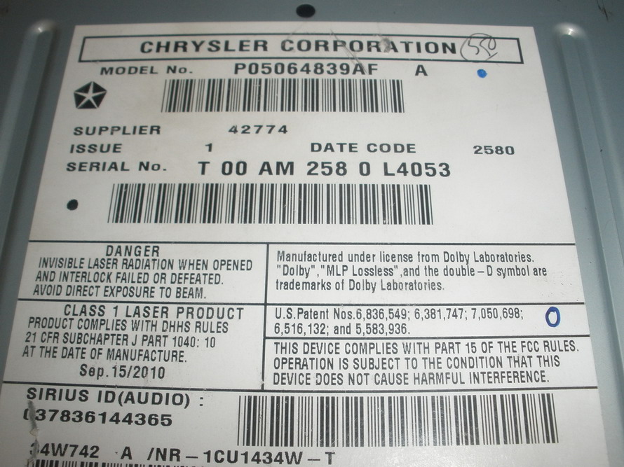 Please compare the part number(s): P05064839 AF, P05064839AF, RHB Factory TAKE OUT OEM MYGIG RHB Garmin Navigation Radio. This is the RHB Media Center 430N U-Connect radio. Features include Touch Screen, better graphics, GARMIN Navigation System, better processor, Weather maps, Sirius TravelLink with weather, Sirius Traffic, DVD Player, Sirius DAR Digital Audio Recorder, Sirius Apps, and a 30 GB hard drive. Back-up camera ready. Sirius Satellite Ready.This is the RHB NAVIGATION model capable of STREAMING MUSIC or audio WIRELESSLY from your ipod, iphone, android phone or any mp3 devices with bluetooth..YOU DONT NEED A CABLE , you can remotely controlled audio tru your bluetooth devices.. It can also be controlled using your existing steering wheel controls.CAPABLE OF VOICE COMMAND FEATURES TO READ AND SEND YOUR TEXT MESSAGES WHILE DRIVING.make sure to check with your local dealer before purchasing it.