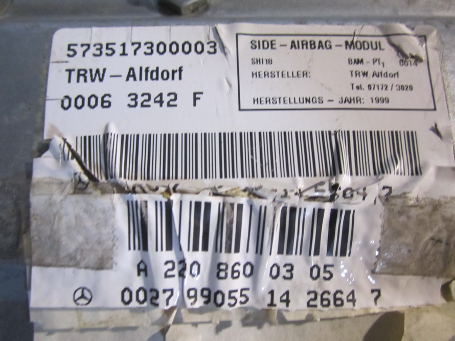 This Door Air Bag is for Mercedes Benz S430 - S500 - S600 - S55 (2000 - 2001 - 2002 - 2003 - 2004 - 2005 - 2006)