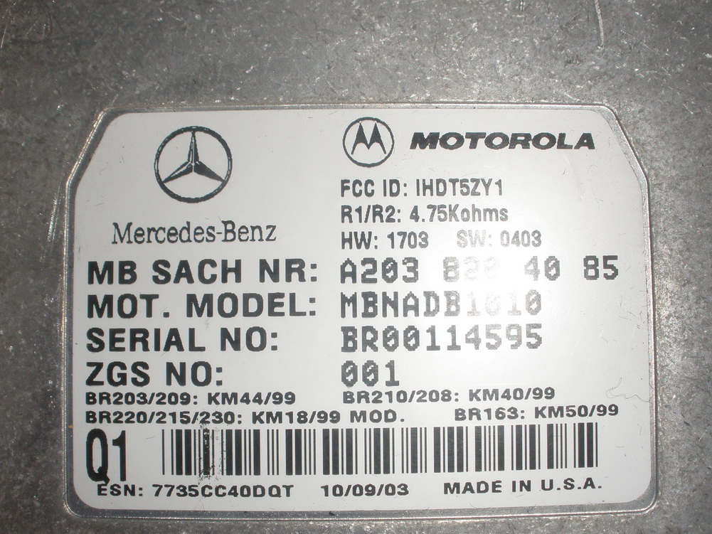03 04 W220 MERCEDES BENZ S500 E500 MOTOROLA VOICE CONTROL UNIT A 2038204085,