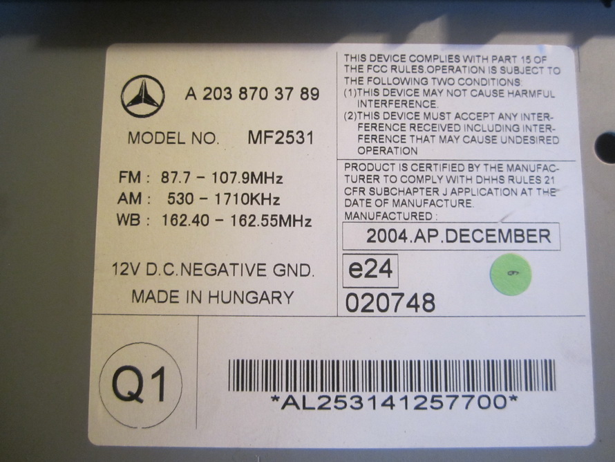 Please compare the part number(s): A2038703789, A 203 870 37 89, 2038703789, 203 870 37 89, RADIO CD PLAYER make sure to check with your local dealer before purchasing it.
