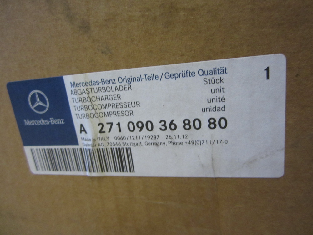 Please compare the part number(s): A2710903680, A 271 090 36 80 Mercedes Benz 204 C Class 271 Engine Turbocharger Brand New OEM 271-090-36-80 make sure to check with your local dealer before purchasing it.